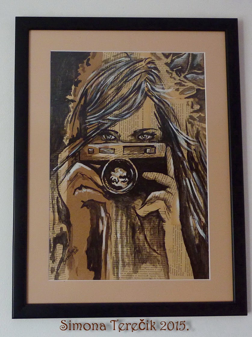- Kolaž u kombinaciji akrilika i tuša na lepenci